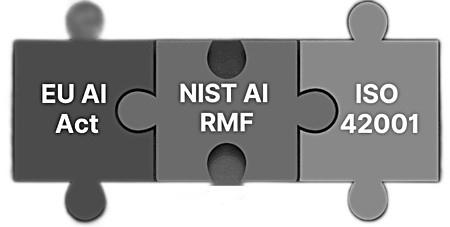 This table maps similar alignment metrics across ISO/IEC 42001:2023 (AI Management System Standard), NIST AI Risk Management Framework (AI RMF 1.0), and the EU AI Act (Regulation (EU) 2024/1689). These metrics serve as gold standard AI governance alignment benchmarks, because each governing body has been trusted for decades.
